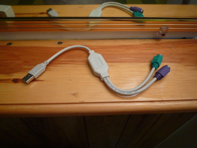 2PS2转USB转接线 $10 (效果:用一个USB接口连接PS2接口的键盘和鼠标)