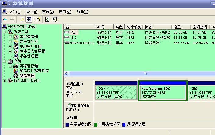 风的颜色 说: 没有使用过也就是没有格式化过的硬盘在xp下只能在 磁盘管理 下才能看到!需要格式化后才能看到! 点击展开... BIOS里能显示2块都在,我把原来的500G设为1st drive,这个新买的1TB设为2ed drive.但是到了XP里,从控制面板-》管理工具-》计算机管理-》磁盘管理 这个路径下面只显示原来的那块500G硬盘。这是什么情况啊。。。XP里都不显示,我怎么格式化呢、、、