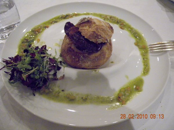 L lavie 新手上路 注册 2004-07-14 消息 337 荣誉分数 3 声望点数 0 2010-02-28 #72 谢谢楼上发的照片,你动作可真快啊 signature应该算是ottawa顶级餐厅之一了,环境和菜码都很讲究,我本来打算在那庆祝春节的,但是一直订不上位子,昨晚正好在那庆祝了一下元宵节,呵呵 图一是生蚝,吃到嘴里挺滑溜的,觉得有点象吃人参果,一不小心还没吃出什么味就直接吸到肚子里了。 图二和三没吃过的恐怕猜不到,这个是烤蜗牛。这道菜是先在面包上挖个洞,然后把烤好的蜗牛和配菜放到里边,然后再盖个盖子。做得很有意思 图四是鸭脯肉,点的时候要well-done的更好些。 图五是炖羊腿,还配了羊肉香肠和stew 图六是烤带子,配了ravioli。这是一种象中国合子的意大利饺子,artichoke馅的。 甜点要了焦糖炖蛋。 饭馆给我们留了一个两面窗户的房间,还放着音乐,虽然法国歌听不太懂,但是环境确实不错。