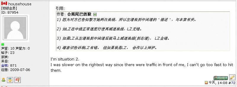仔细读读,看这样申诉成吗?有没有什么自相矛盾的地方?再想想交通规则和当年开车师傅怎么教换线的。:p