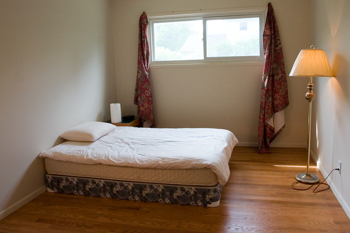 新装修及粉刷,全部硬木地板,地下室不住人。房间宽敞明亮,提供家俱(床垫,桌椅,书架)。