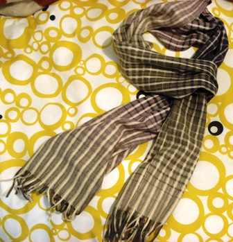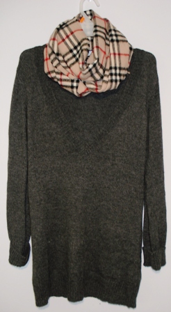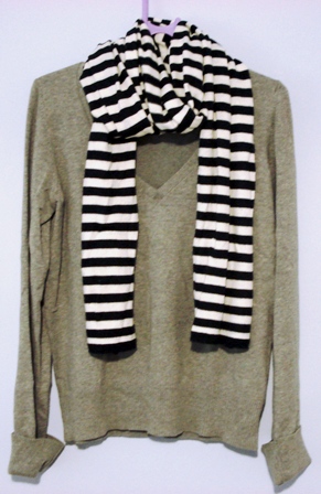 浅灰色V领针织衫,$5, 黑白条围巾:$10, TNA的