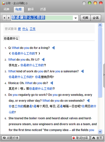 关于汉语功能,相信很多朋友在使用《谷歌金山词霸2.0》测试版的时候也都体验过了,海量汉字、成语、诗词和名言警句,权威汉字、词详解,手写输入功能让汉字100%可查询。怎么样,强大吧,即使你不用英语,《谷歌金山词霸2.0》也能帮上你的忙,谁还没遇到过几个读不出来的生僻字呢?
