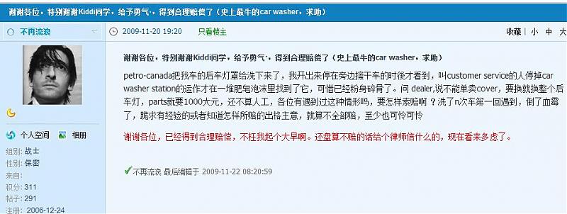 多伦多的GM凯迪拉克车主:洗车把灯洗掉了