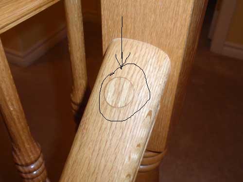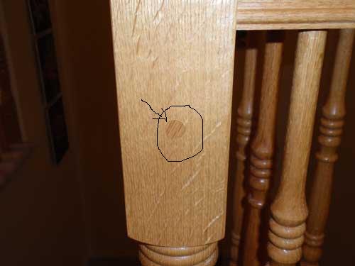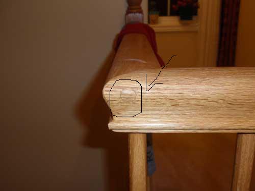 扶手的木头下面有一铁条,从下往上看,你会看到镙丝的。跟楼面相接是用胶粘的,一般是用齐平锯断。