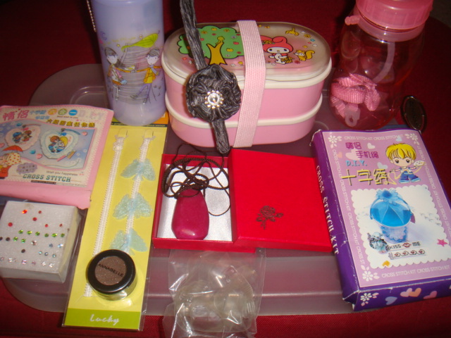 多买多送,价钱好商量 有兴趣的MM可以联系我 613-3020927 我家住在 2850 CEDARWOOD, 谢谢 只剩下2/3的绿茶香水还有珍珠手机贴了,每样$3 水钻的发箍$10 水钻的小饰品盒子$8,放项链或者戒指的 LOVE香水$5,只用了一点,瓶子是心形的,很漂亮 精美小扇子$2