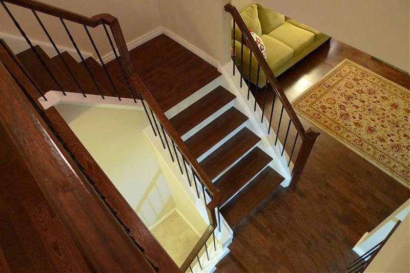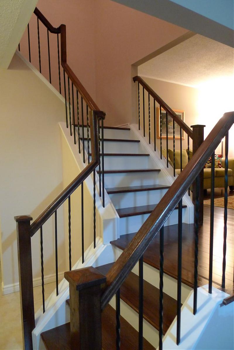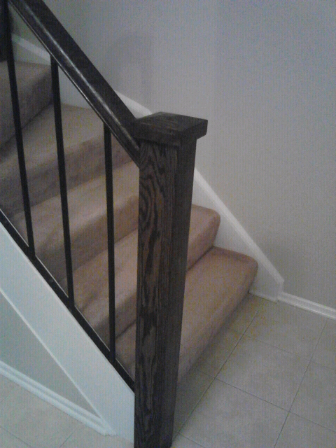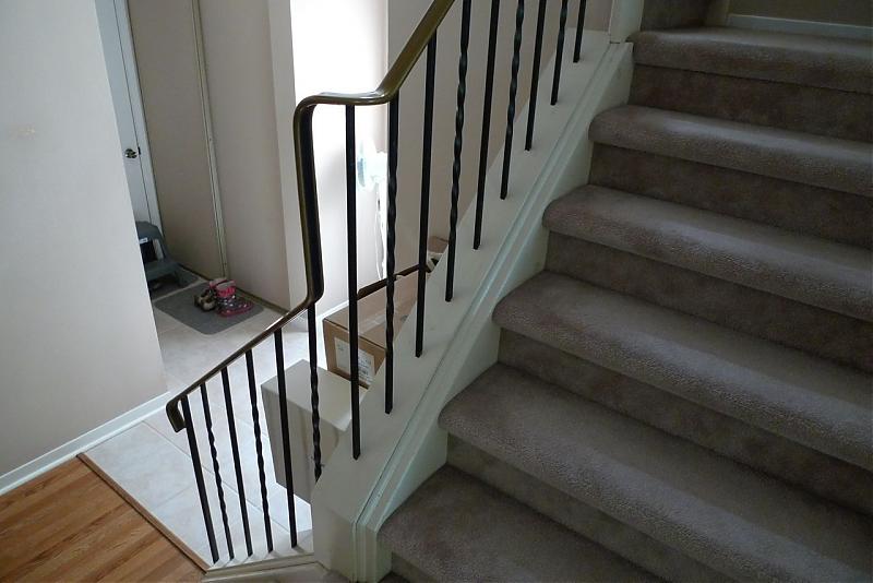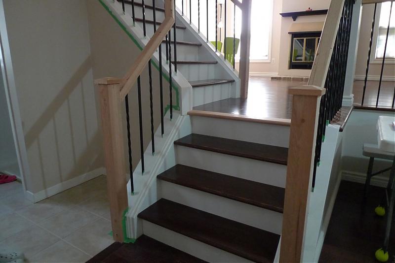 本来想换铁条的栏杆, 连楼上hallway 一共有60多根,是一笔不少的开支。最后还是买了厚的木板一根一根锯出来,sanding,一头还要打出笋头(round tenon, 用于插入扶手或楼梯板的空中), 这些工作花了不少时间。