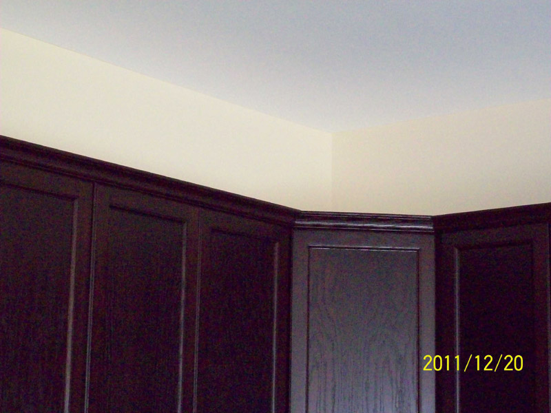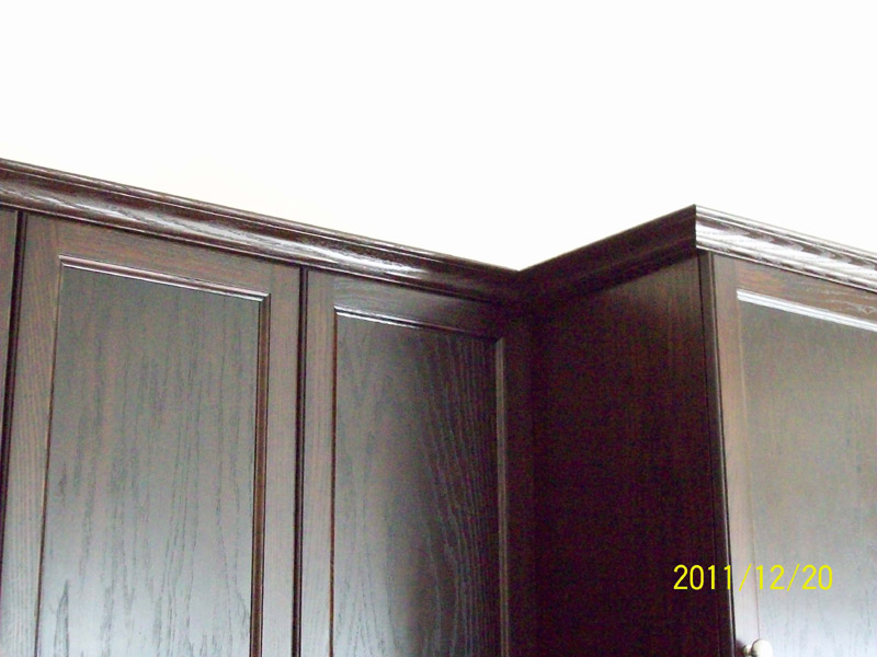 按molding 平放在miter saw的台面上切(on Flat), 如果你的molding 是45/45 那种,135° corner 应该是miter 16.3°, Bevel 15.7°。90度的corner的miter角度 是35.3°,bevel角度是30°。