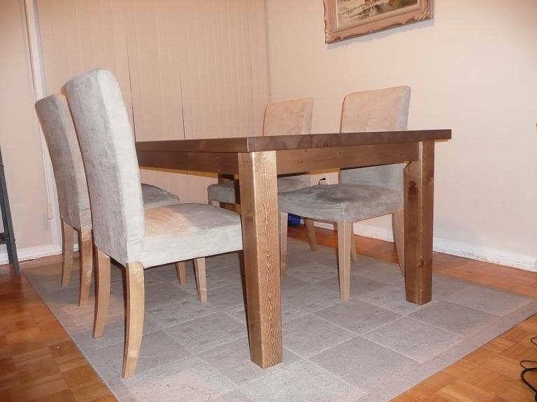 1,餐桌及四把椅子加地毯$350。一年半前共花$900买的。