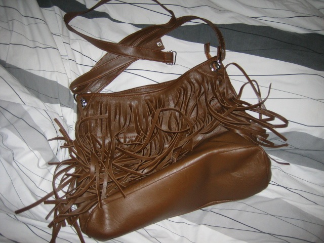 7. 流苏仿皮包,带伸缩肩带(全新,一次没用过) ----- $10