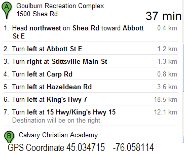 该校地址如图,离 Stittsville 的 Goulbourn recreation complex 三十多分钟车程。