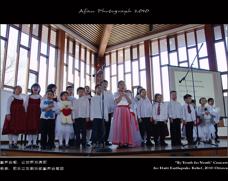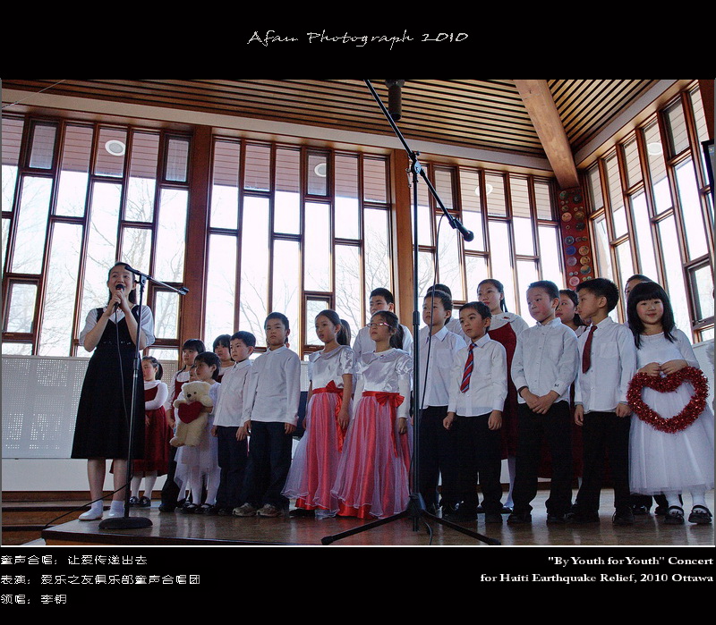 By Youth For Youth青少年慈善音乐会是渥太华中国校友会的一个品牌活动,是面对地震海啸等人道主义灾难时我们华人社区奉献爱心、汇报社会的一种表达方式。本届音乐会的主题是“救助海地地震灾区的孩子”。