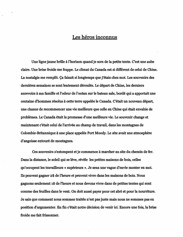 For a French writing competition, Masta Da Costa, organized by Citizeship and Immigration Canada, I entered an essay "Les heros inconnus".