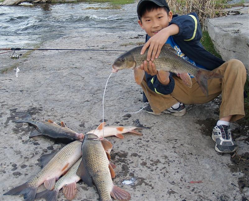 版主说的对,想起来了,那些都是Sucker,不是鲤鱼。Sucker嘴朝下,细长;鲤鱼嘴朝前,身子宽点儿,短点儿。我在fizory park没钓过鲤鱼,钓过Sucker。