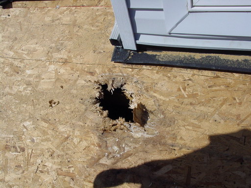 屋顶的排水管放置不当会造成屋顶结构板腐烂,通常原因会由于Gutter排水直接经过shingle ,这样小水流会由于虹吸作用渗入SHINGLE直到木板层面,长时间就会引起屋顶结构腐烂。解决之道是不要顾及美观或者施工成本因素一定要让所有Gutter 管路层层链接不要让水途经SHINGLE排泻这样就可以避免。