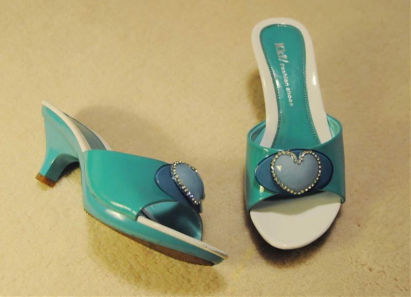pesticide 知名会员 VIP 注册 2005-04-29 消息 1,293 荣誉分数 85 声望点数 158 2011-03-04 #45 前年回国买的皮凉拖,蓝绿色水钻心型装饰。国内杂牌子的,质量不错。中跟带防水台。也就穿过两三次。$25