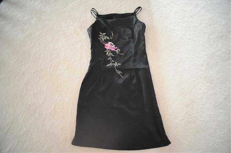 改良旗袍裙,国内S号,绣花,弹力力缎,适合瘦小的美女.$15 淡粉色PARTY小礼裙,胸部设计很好地遮掩了东方人胸部不够丰满的缺点,上面有亮钻及珍珠装饰,胸部有胸垫,不用另带BRA.国内S号,只穿过一次.适合瘦小的美女.$40