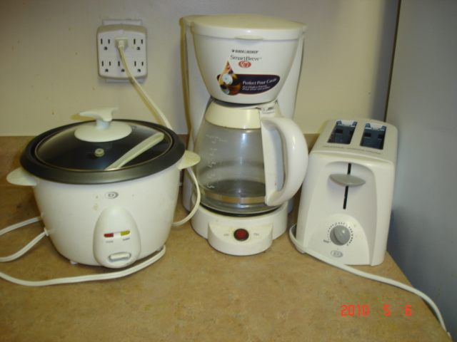 图一:从左至右:小饮水机 $4;中间的 $3;洗菜用的 $1(sold) 图二:碗 一起 $6 图三:电饭煲:$5(sold);咖啡壶(12 cup) $6; 烤面包机: $4 (sold) 图四:油炸锅:$6;烧水壶:$5 图五:砸蒜的:$5 (sold)