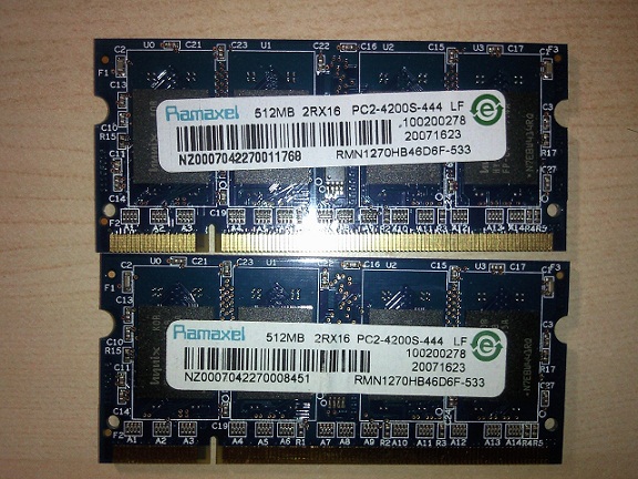 2条512MB的笔记本内存条和一条256M的ddr pc2700 20块全拿走