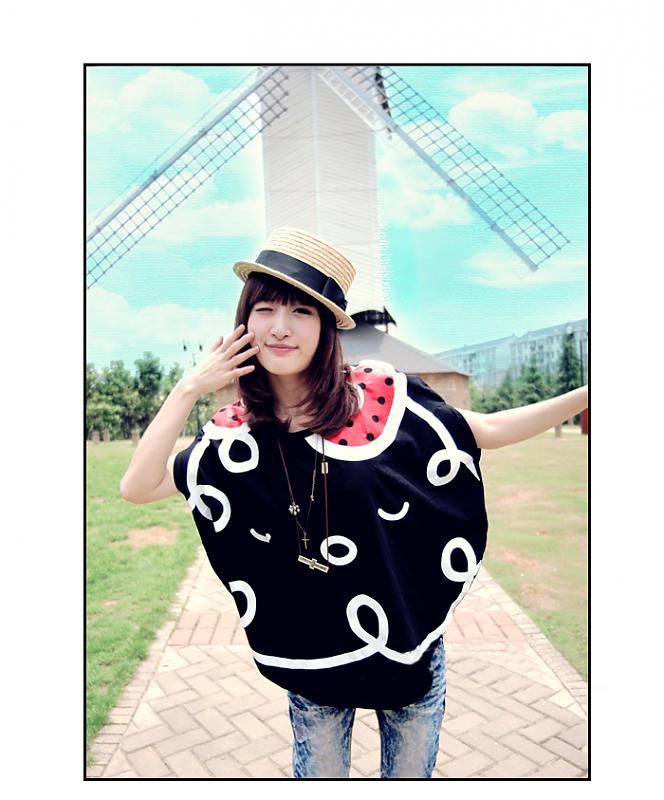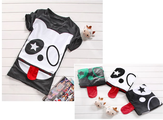 • 日韩10春夏新款时尚高贵气质个性吐舌头鬼脸可爱娃娃宽松T恤 $20.jpg