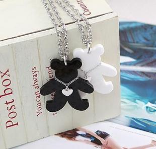 • 宝贝泰迪熊有花纹黑白项链.jpg