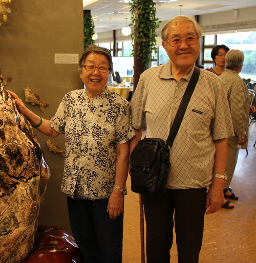图为国务院侨办副主任何亚非与画家共同观看展览