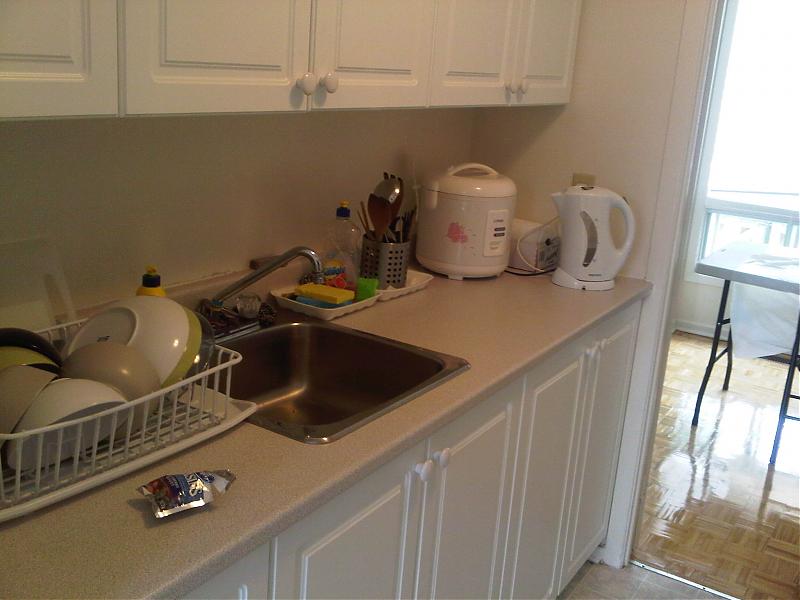 厨房设备齐全,楼下洗衣干衣设备俱全。附加一个免费停车位。