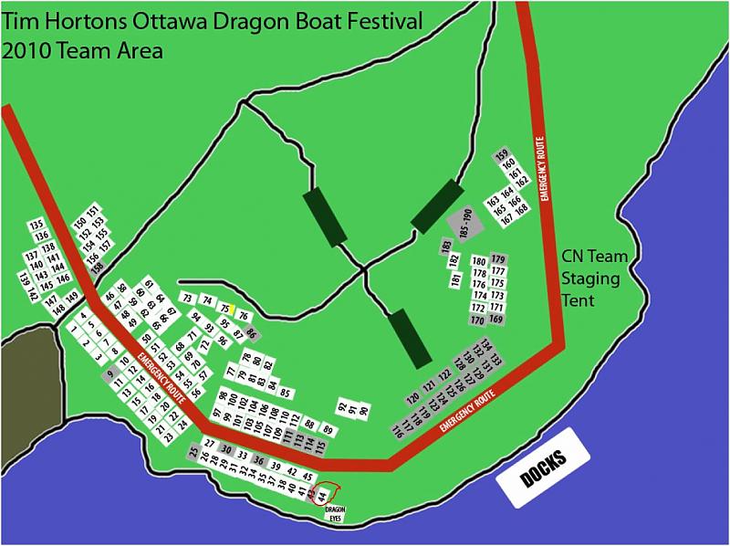 各龙舟队都将有指定营区(休息地),咸氏联校龙舟队的营区是 Tent #44 。欢迎各位校友和朋友前来探营,为我们的队员打气加油。