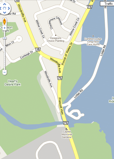 往西, 方向错了。就6月27号晚上8:00吧。Prince of Wales Dr.往南过了Woodroffe Ave.,有片叫Capital Memorial Gardens的坟地。等着你。好多年没活动筋骨了,还得谢你给了这个机会。