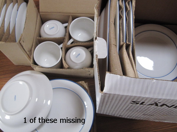 ********** SOLD ***************** 一套是全新的没用过, 16pcs full dinner set asking: $15 另一套是数年前Ikea买的20pcs, 只用过其中4个盘子,打碎一个 现在剩下15个盘子+4个杯子 asking: $10 装修厨房没地方放了,最好是您两套一起搬走,总共$20 有兴趣的请悄悄话给我 我家在 baseline & fisher 附近,随时可以上门来取, 谢谢。