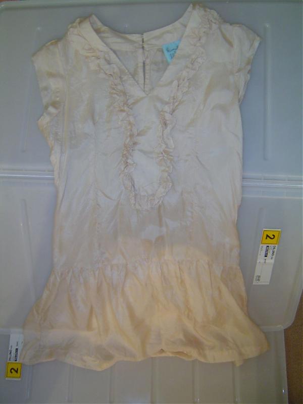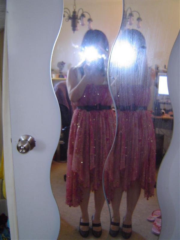 X Xylia 新手上路 注册 2007-08-08 消息 93 荣誉分数 0 声望点数 0 2010-06-29 #17 图中白色吊带和腰带是我乱搭的。 全新,而且是全丝的。我个子矮 穿起来怪怪的。 $20 Diane Von Furstenberg. 不了解的姐妹可以google一下,原价278。新的,牌子都在,但是缺点就是这个颜色看起来旧。 上面全是小亮片,裙边缘都是小硬币加铃铛。可以当裙子或者是长裙穿。 我没有勇气穿它,所以忍痛转让。哪位时尚敢穿的姐妹把它带回家吧。$70