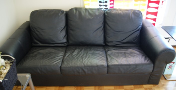 黑色全皮沙发$125送玻璃小茶几