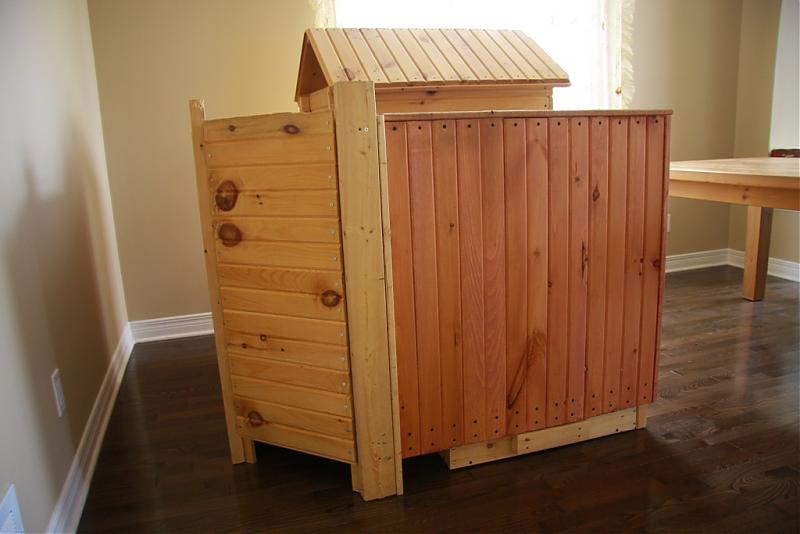 室内狗房.一室一厅.99%实木,无毒实木.找专人定做. 质量坚固. 外形请看图. 因为是实木所以很沉. Good CONDITION. 我家巨贵已经不需要了. 防水play area with removeble tray.材料费花了近$300, 卖$150