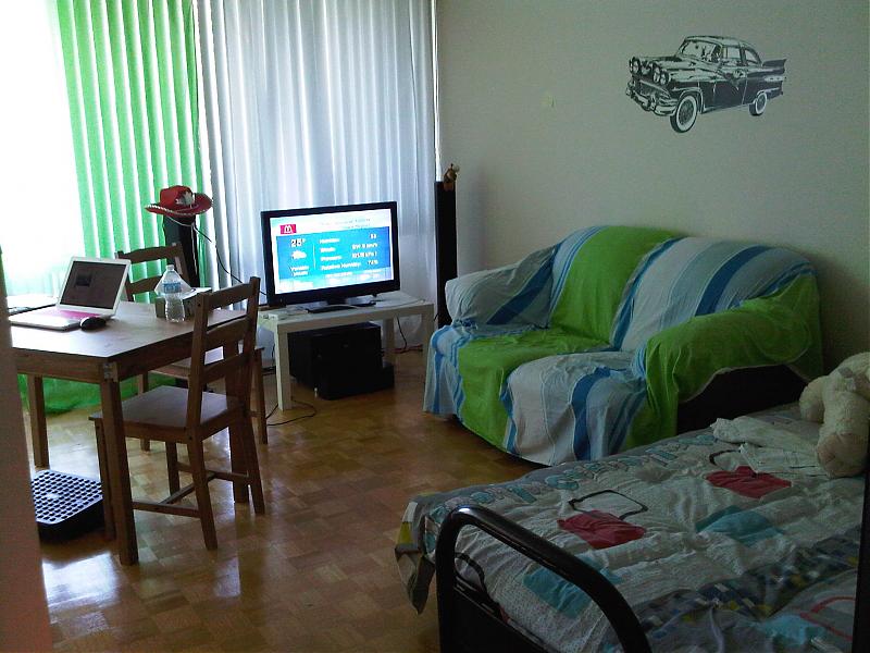 这是一个一室一厅的公寓,客厅很大,我住客厅,出租卧室房间,