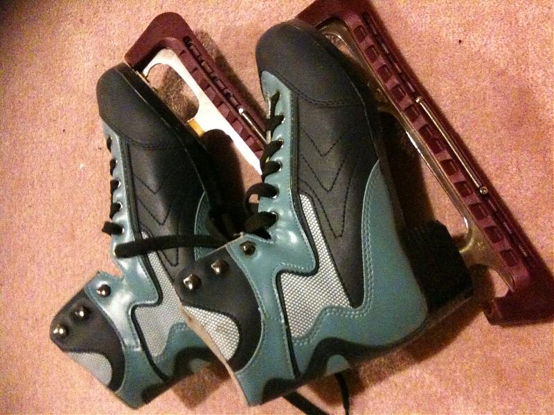 9成新的浅兰色冰鞋9号加保护刀套:$38