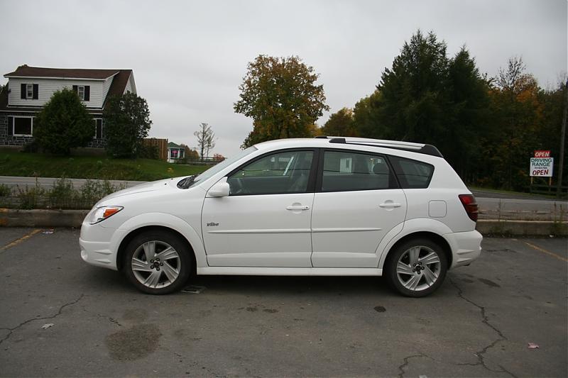 2007 Pontiac Vibe 白色的, 1.8升,4缸,自动档, ABS, fog lights, sports package, 17'' rim, 加大的排气管, 7 speakers plus sub woofer, pioneer audio system, 可以连接ipod and mp3 player, 77000km ,另外送4个雪胎on alloy rims , ask for $13000 (TAX in) or take over finance $212.66 bi-weekly. 我已经付了三年了 finace 2012年8月底到期 现在这款车的基本款 同样的公里数大概是$14000 当时买的时候加了将近$5000的package在上面 因为找到了新的工作 公司给车用 月底就要走 所以想快点出手 其实$14000基本就是剩下还没有付完的钱 我也没打算要回什么钱 如果感兴趣的朋友现在买下或者take over的话 2年以后车就是你自己的 你可以自己一直用 或者卖掉还能拿回一些钱 我的联系方式705-207-8825 or ericli1982@hotmail.com 谢谢!
