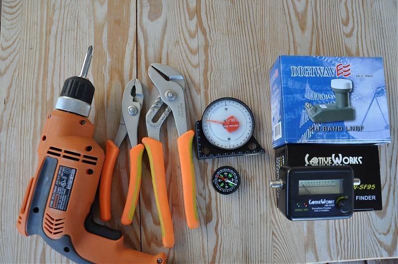 3. 用指南针定位到North,我是把锅装到North顺时针zzz角度上, 然后仰角设为xxx..(这一步我严重不肯定, 因为我是个菜鸟这是我第一次自己调星..