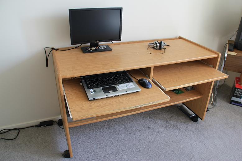 可滚动双人用电脑桌 (W139cm X D61cm X H80cm),原用于医院内部办公室,质量绝对比一般电脑桌好:$10