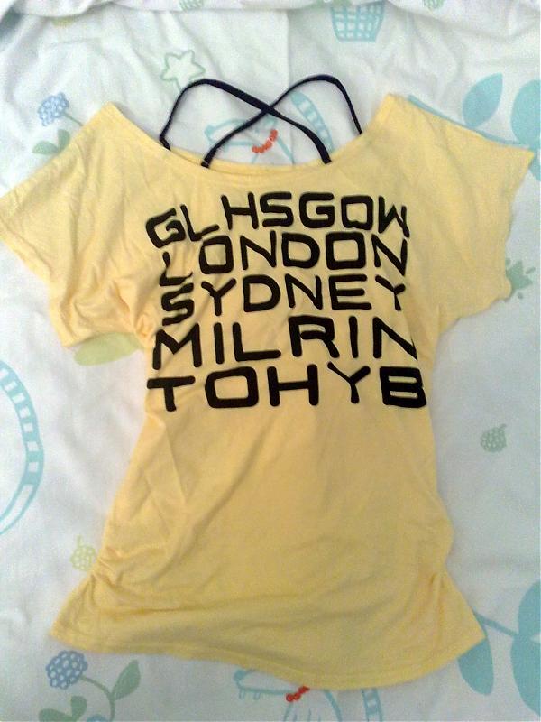 3. 彩色条纹吊带+字母棉质 大圆领T恤 $15