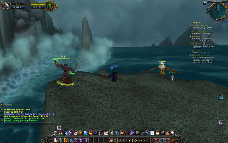 新图,开始能下普通的5人本了,战斗场面比较宏大,什么地颤,防火,都挺逼真的。水下效果,很吃机器,我很卡。还有第三幅大地图,是土元素界面,在大漩涡地下,各种五彩缤纷,也是眼睛很累。 ps,第一张图是部落在艾萨拉的大炮,不知道这么大,是拿来炸什么的~ ~