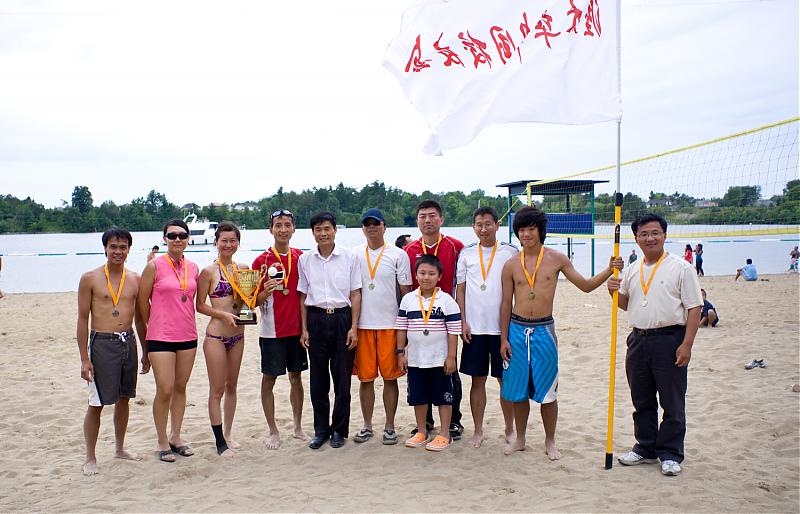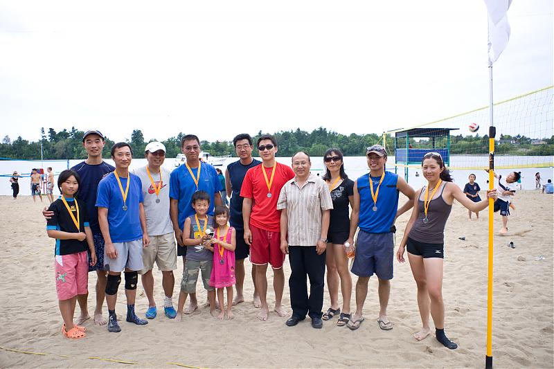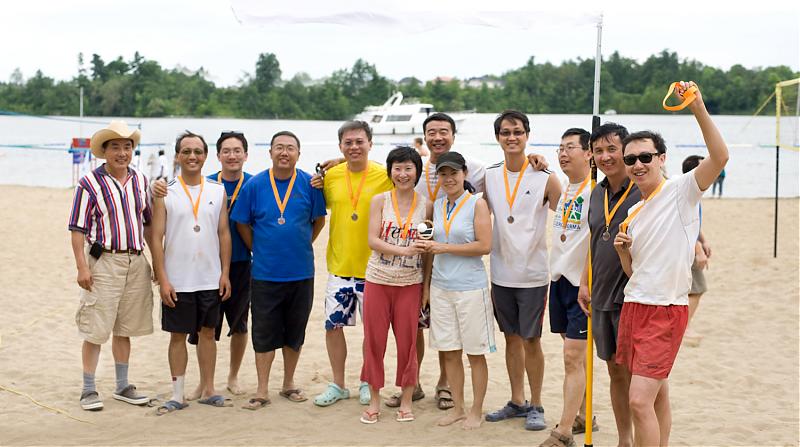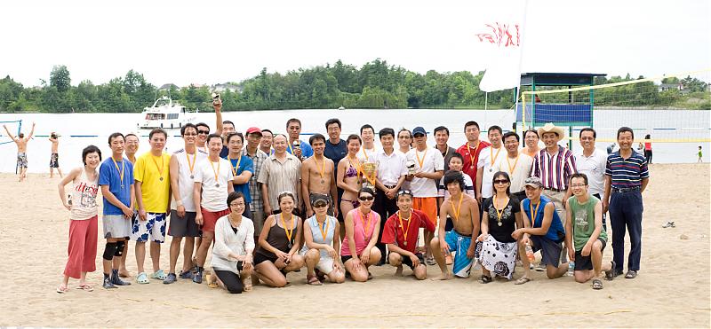 对于渥太华中国校友会而言,每年一度的沙滩排球赛是一项‘传统’而又‘保留’的活动;对于渥太华的华人排球爱好者来说,每年一度的沙滩排球赛既是展示球艺、‘鏖战沙场’的机会,又是老友相会、欢声笑语的时刻。由渥太华中国校友会主办的第九届加华杯六人沙滩排球赛于二零一零年七月二十四日在慕尼斯湾的沙滩上成功举行。经过一整天的激战,黑马队获得冠军,老友队摘得银牌,终结者队获季军,Joe Beaches队获第四名。赛后中国驻加使馆教育处陈文申公参及一等秘书翟建军先生和组委会主席李世友先生分别为获得前三名的各队队员颁发了奖杯和奖章。