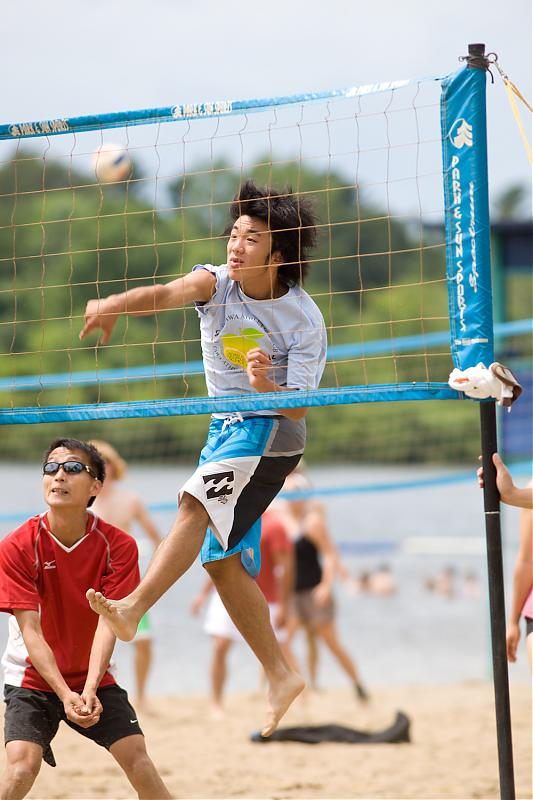 当比赛进行到由终结者队和 Joe Beaches争夺第三名决战时,沙滩上风力加大但丝毫没有影响队员们的斗志。从场面上看,两队的比赛鲜见腾空飞舞的扣杀,高高跃起的拦网,而更像是两位太极高手的‘推手’过招,表面上温文尔雅,私下里暗中叫劲。他们比的是耐心,比的是稳定,比的是谁的失误少。比赛呈胶着状态,比分像爬楼梯一样节节交错上升。头两局的比分都是21:19, 每队各胜一局。在决定胜负的第三局,终结者队以微弱的优势战胜了Joe Beaches而获得第三名, 有史以来第一次登上领奖台。Joe Beaches 屈居第四。