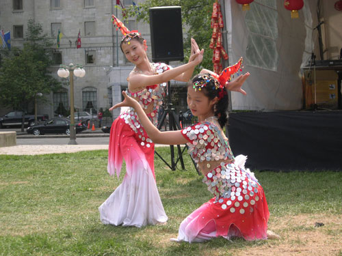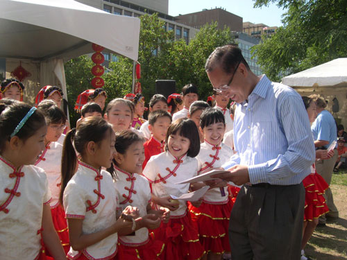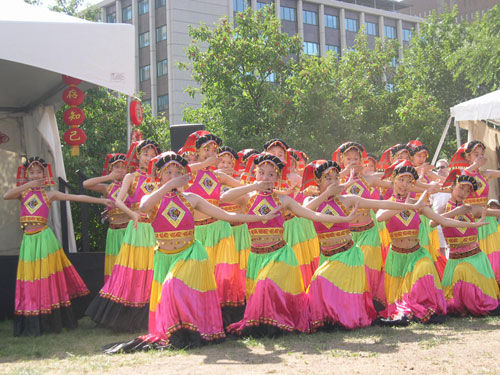 7月31日,由北师大附属中小学组成的北京金帆艺术团一行40多人到访加拿大首都渥太 华。他们在渥太华里多运河节演出的歌舞生动活泼可爱、造型瑰丽,既有民族特色,也充满时代气息,演出受到当地观众高度评价和热烈欢迎。里多运河节董事会向 金帆艺术团颁发奖状,以表示感谢和祝贺 (李文政 图文报道) 舞蹈:远方的宾客请你留下来