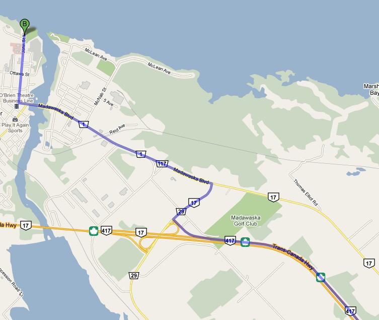 Continue to follow Madawaska Blvd