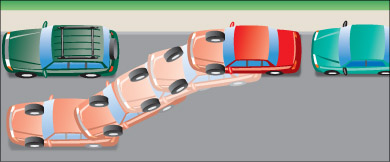 When you can see the outside rear corner of the vehicle in front of your space, straighten your wheels as you continue to reverse.