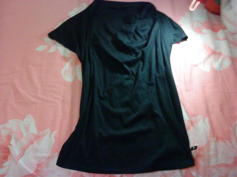 全新黑色长版大别扣T,很长的一款,袖珍一点的mm可以当裙子穿,配条腰带很有型 5刀,适合s-m的mm