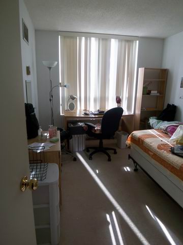 房子是condo,一室一厅,795一个月,包水、电、暖,网不包,有中央空调,屋内有洗衣机和烘干机,所以洗衣不用额外付费。