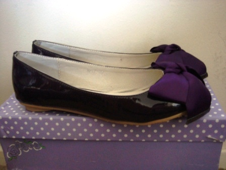 转让NEW *amai*漫妙舞漾甜蜜滿載蝴蝶結娃娃鞋---時尚深紫(漆皮) size 7