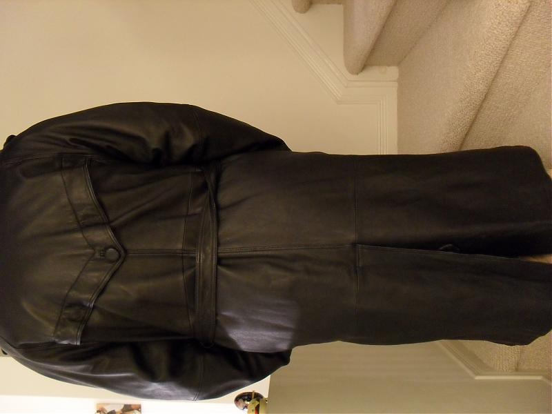 黑色皮风衣,活里。适合身高180 ~ 185 男士。