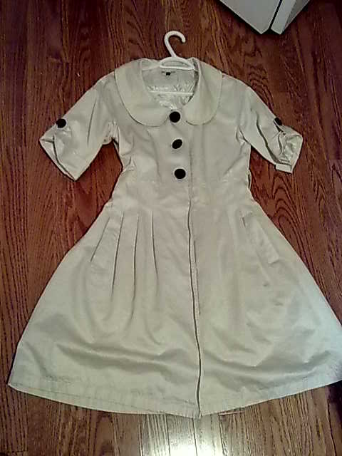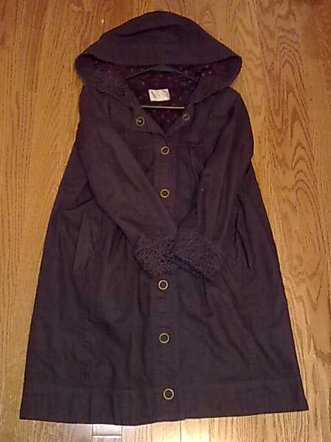 3. 深灰色风衣很可爱,帽子袖口都是花边 $20